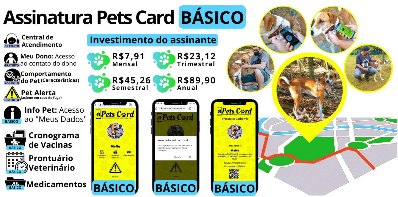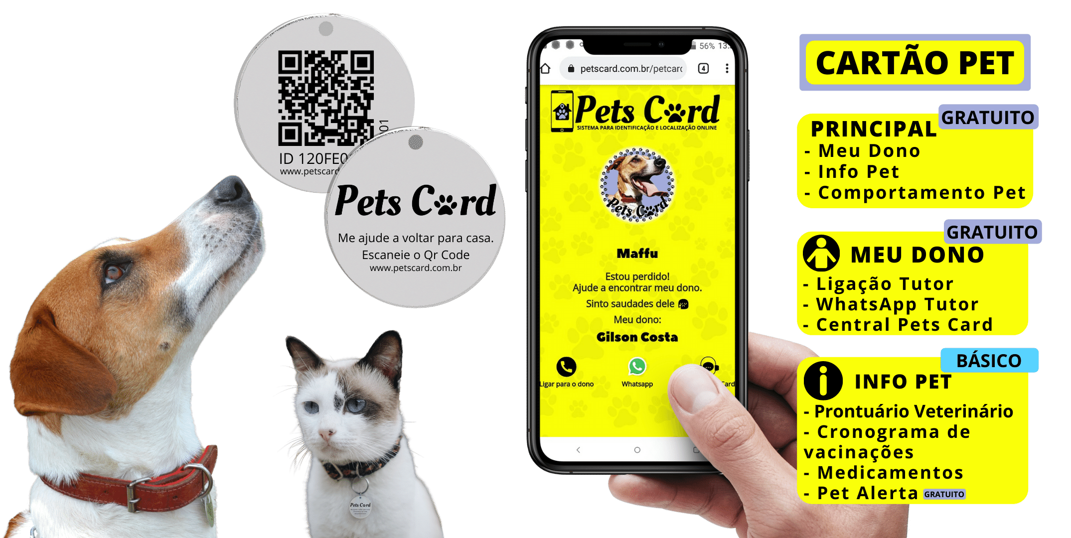 Através do QRCode impresso na Tag PetsCard da coleira, você pode acessar facilmente as informações do pet.